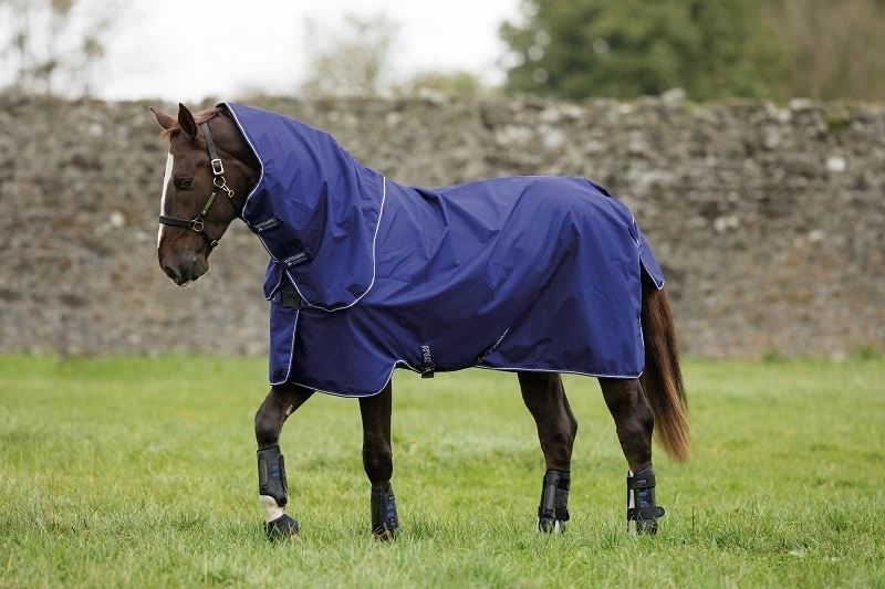 Detta är ett mycket slitstark och hållbart täcke från Horseware med yttermaterial i 900 Denier framtaget för att klara av hård väderlek och att hästar går ute i grupp. Yttermaterialet är vattentätt samtidigt som det andas väl, innerfodret är blankt för att förhindra skav. Amigo Hero har en vattentät yta med 3000 mm vattenpelare, samt en andningsbar yttersida i polyester. Täcket är försedd med Amigos nya DISC- front för optimal passform samt en stor svanslapp som står emot vind och regn vid dåligt väder.