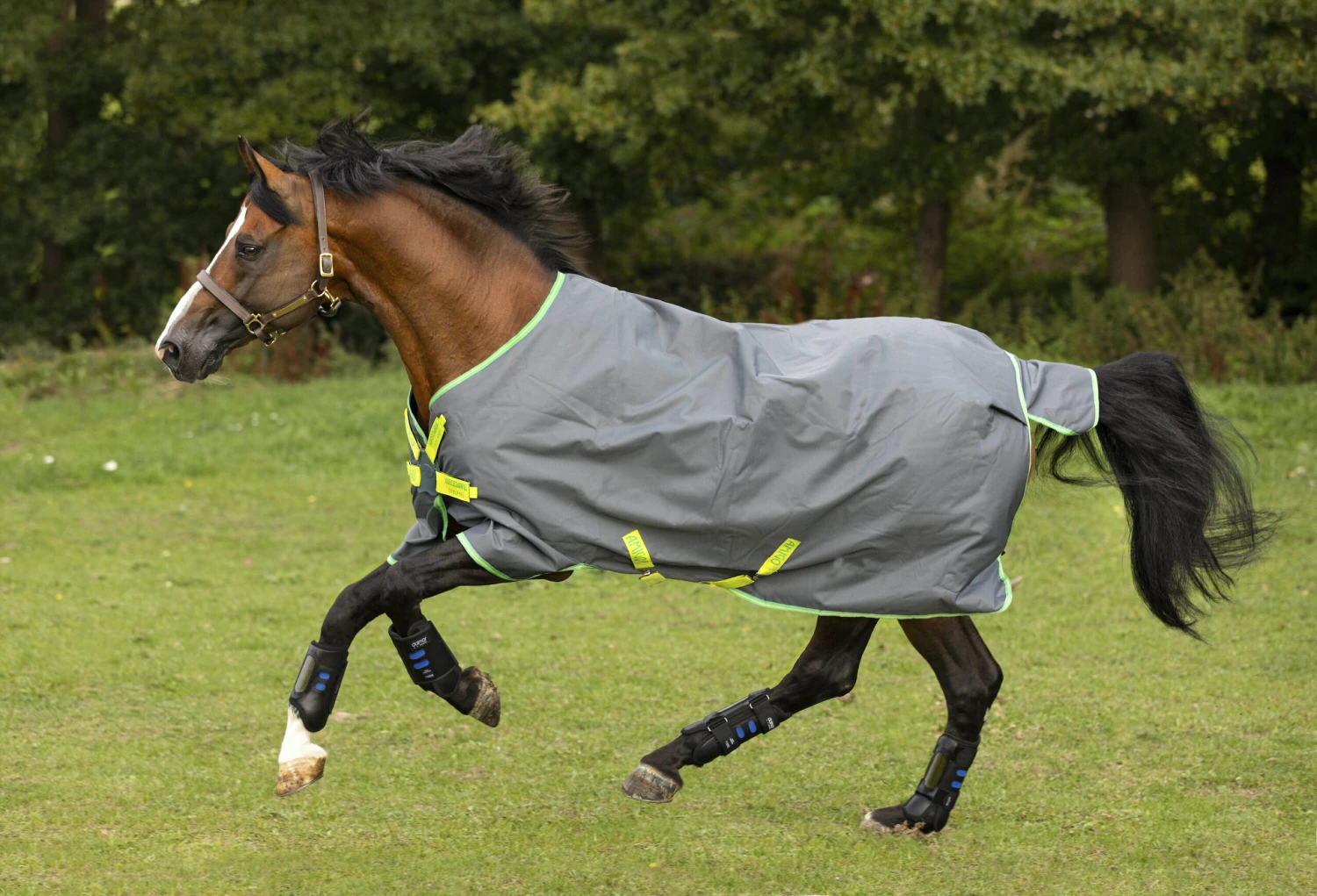 Diese Regendecke hat die absolut höchste Passform und hat ausgeschnittene Vorderbeinbögen für optimale Bewegungsfreiheit. Amigos Disc-Front.
