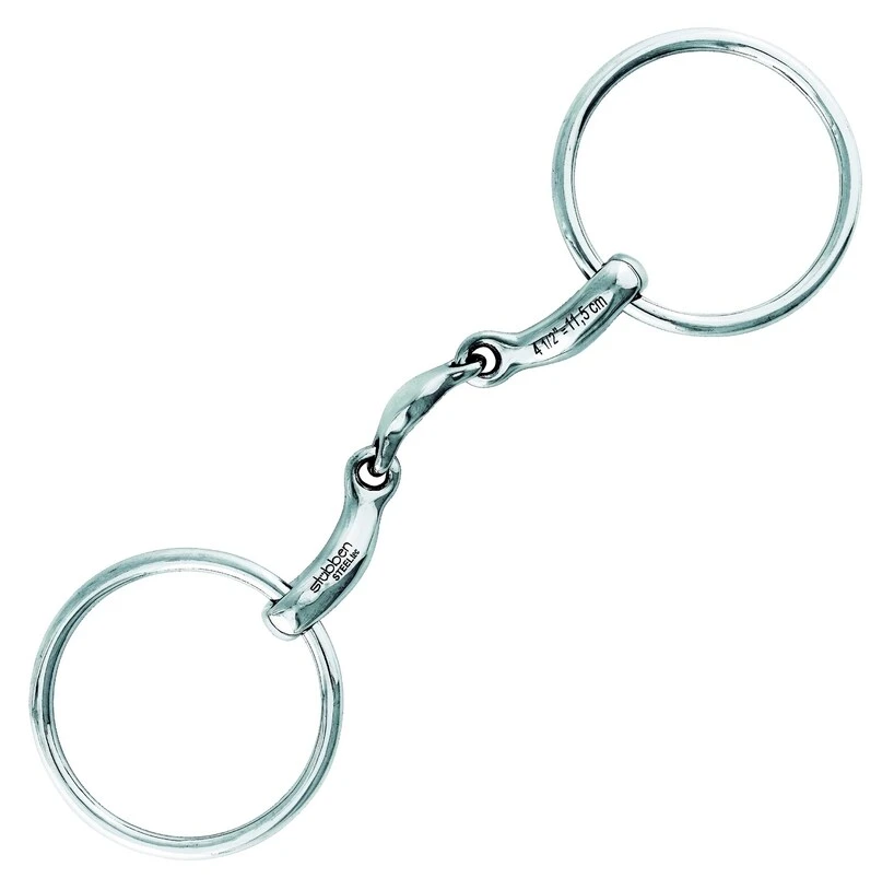 Doppelt gebrochenes Trensengebiss mit ergonomischer Passform. Der mittlere Teil des Gebisses ist flach und hat auch eine bestimmte Funktion der zugewiesenen Zungenfreiheit.