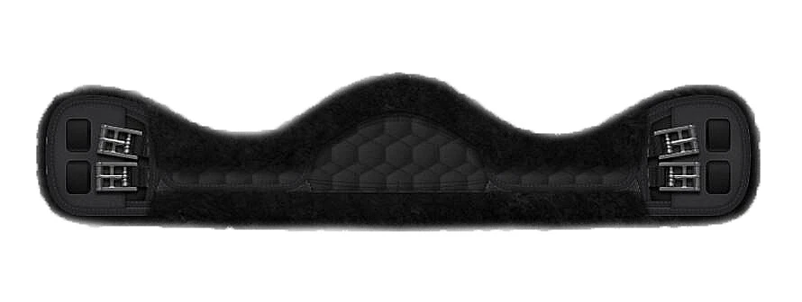 Der Sattelgurt ist schwarz mit dunkelgrauem Schaffell.