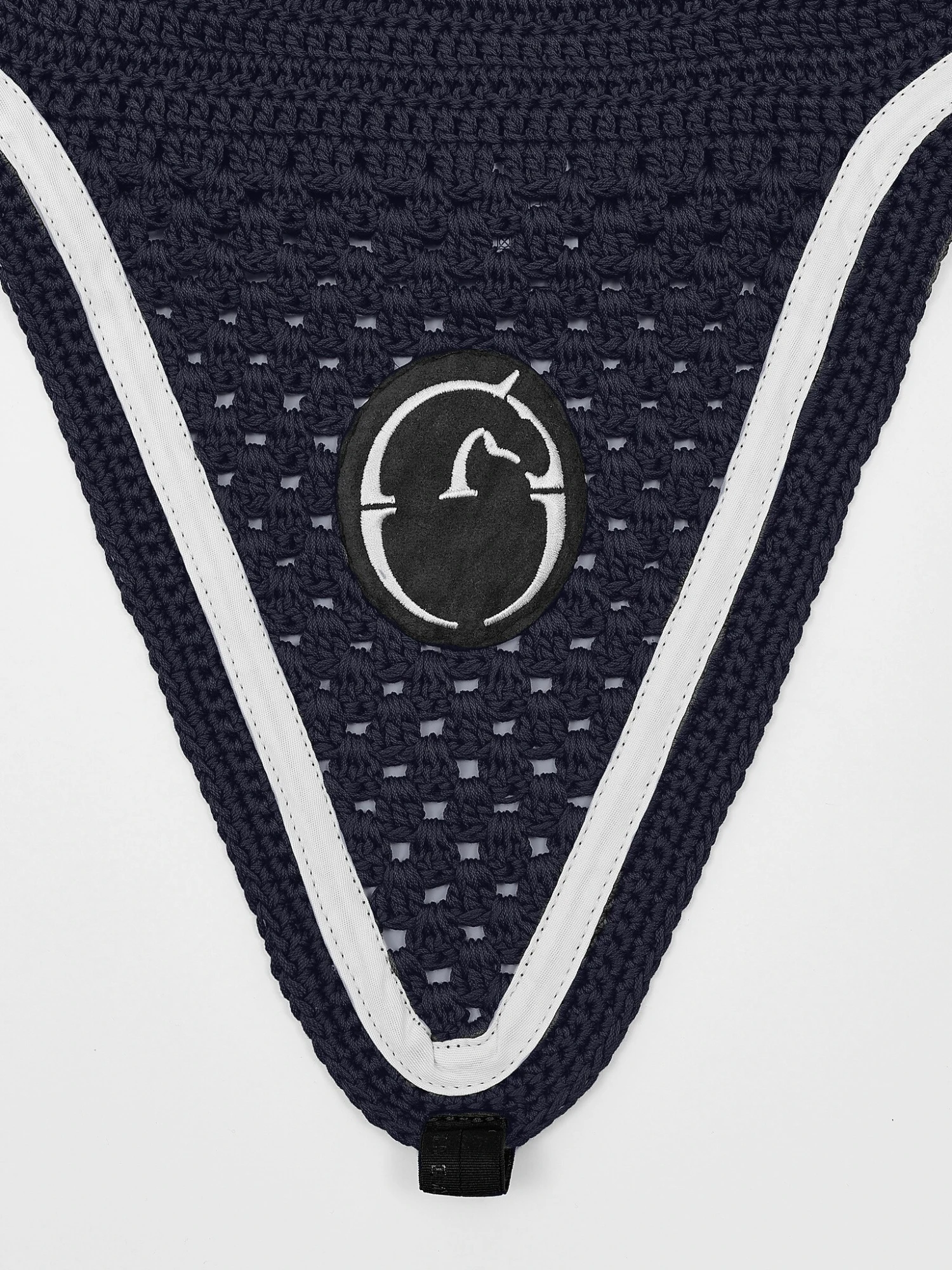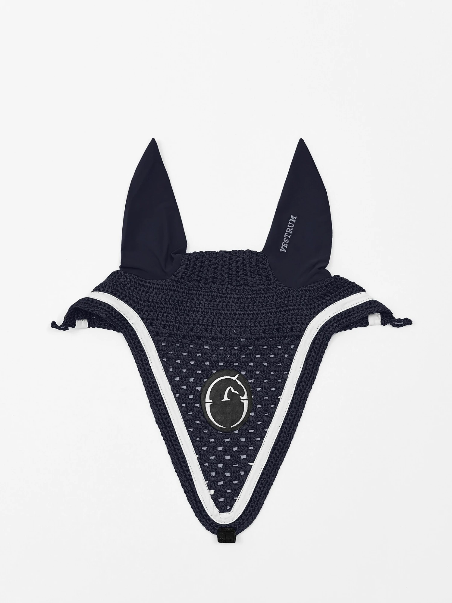 Die Augusta Fliegenohren sind in einem langen Modell, das Sie am Nasenriemen befestigen. Sie sind in Marineblau mit cremefarbenen Details in Form von Vestrums Logo und Band entlang der Kante.