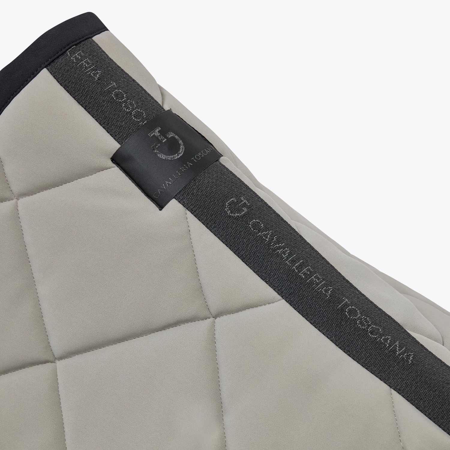 Diese Dressurschabracke von Cavalleria Toscana ist unglaublich schick mit großen gesteppten Quadraten. Die Diamond Quilted Jersey Dressurschabracke ist in einer schönen pistaziengrünen Farbe und hat ein schwarzes CT-Logo, eine schwarze Einfassung und einen schwarzen Kanal entlang des Rückens mit dem Cavalleria Toscana-Logo auch dort.