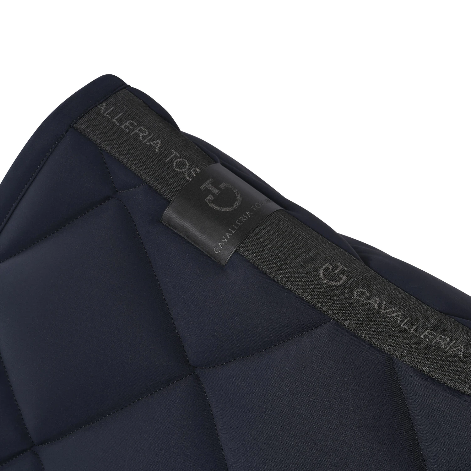 Diese Springschabracke von Cavalleria Toscana ist stilvoll und elegant mit großen gesteppten Quadraten. Die Diamond Quilted Jersey Springschabracke ist in einer schönen marineblauen Farbe, hat ein weißes CT-Logo seitlich sowie einen schwarzen Kanal entlang des Rückens mit dem Cavalleria Toscana-Branding auch dort.