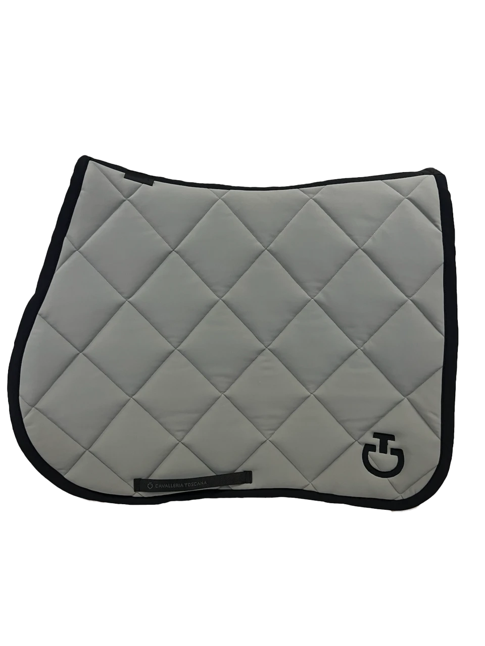 Diese unglaublich stylische Springschabracke von Cavalleria Toscana ist in einer schönen pistaziengrünen Farbe mit großen gesteppten Quadraten. Die Diamond Quilted Jersey Springschabracke hat ein schwarzes Band am Rand, ein CT-Logo und einen schwarzen Kanal entlang des Rückens mit dem Cavalleria Toscana-Logo auch dort.
