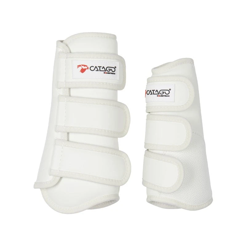 Die Außenseite der Gamaschen ist wasserabweisend und leicht zu reinigen. Die Catago Dressage-Gamaschen haben ein weiches Neoprenfutter um eine gegossene PVC-Schale, wodurch eine schlagfeste Gamasche mit einer sehr guten Passform entsteht.