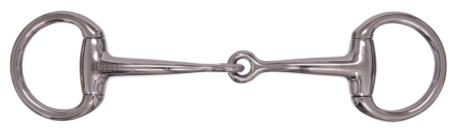 Einfach gebrochenes Eggbutt-/Olivenkopf-Gebiss als Unterlegtrense aus Edelstahl.