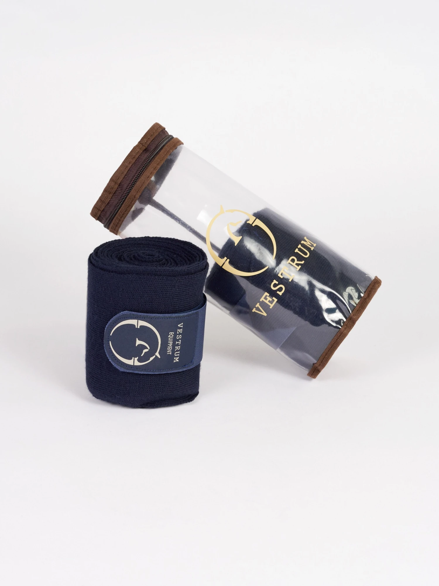 Die Fano Bandagen von Vestrum sind echte Klassiker unter den Stallbandagen, die sich perfekt zum Bandagieren der Pferdebeine in der Box oder beim Transport eignen. Die Stallbandagen sind in einer schönen marineblauen Farbe mit Vestrum-Logo in Beige auf der Schnalle.