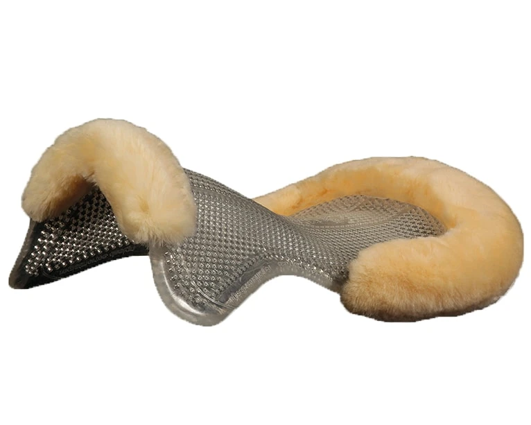 Gel-Pad mit Lammfellrand von Acavallo mit Anti-Rutsch-Effekt, das sowohl stoß- als auch druckabsorbierend wirkt.
