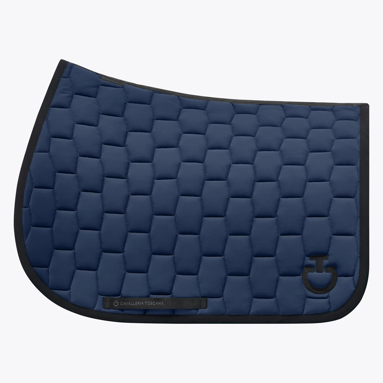 Die Geometric Quilted Springschabracke ist eine wunderschöne Springschabracke mit einer sechseckigen geometrischen Steppung. Diese Cavalleria Toscana Springschabracke hat eine schöne blaue Farbe mit schwarzem Rand, CT-Logo in Schwarz und einem schwarzen Kanal entlang des Rückens mit Cavalleria Toscana-Branding auch dort.