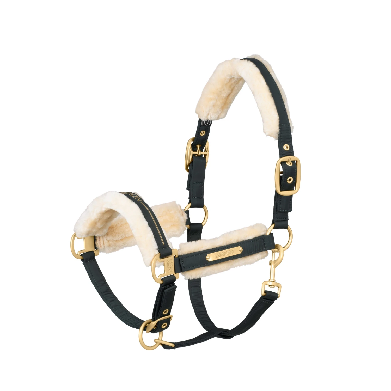 Glänzendes Kunstfellhalfter mit einer schön glänzenden Außenseite und einer weichen und bequemen Innenseite aus Kunstfell für den besten Komfort für Ihr Pferd. Es gibt Schnallen auf beiden Seiten des Halfters, um die Größe optimal anpassen zu können. Das Halfter kann auch am Kinn verstellt werden.