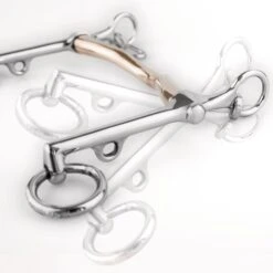 Das HS-Kandarengebiss ist mit 5 oder 7 cm langen Anzügen erhältlich. Die kürzeren Anzüge geben einen etwas direkteren Kontakt und die längeren einen etwas schärferen.