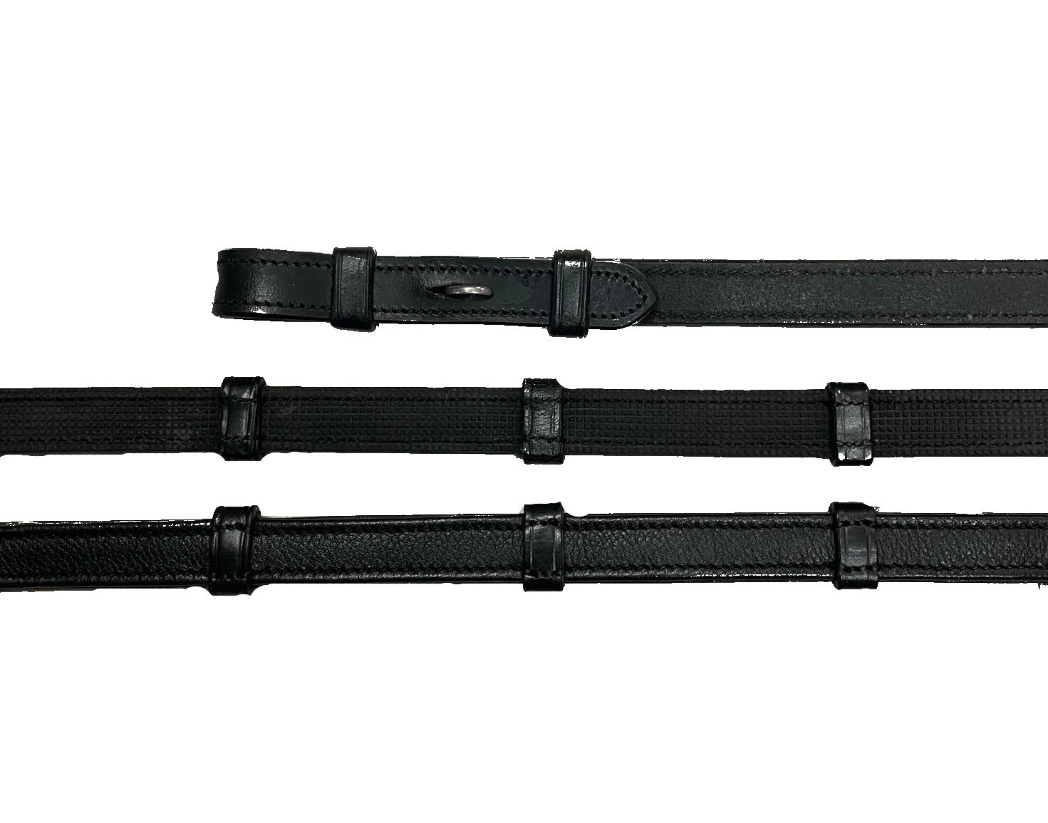 Die Hunterzügel von Dyón sind weich, angenehm in der Hand beim reiten und absolut einzigartig bei Regenwetter oder wenn das Pferd schwitzt und nass wird. Das dünne Gummi, das sich auf der Innenseite des Zügels befindet, gibt Ihnen auch bei den schlechtesten Umständen einen fantastisch guten Halt. Es gibt keine Martingalstopper an den Zügeln.
