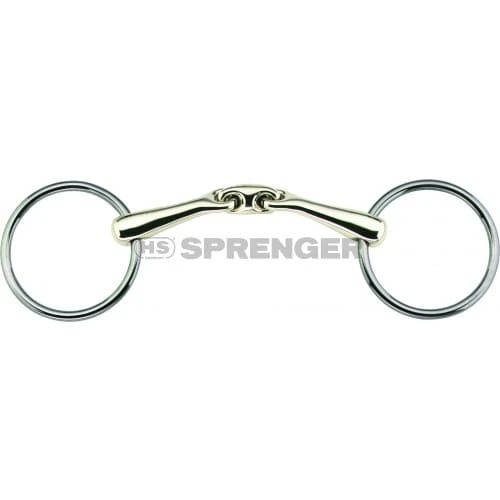 Herm. Sprengers KK-ultra doppelt gebrochenes Trensengebiss aus dem Material Sensogan. 14 mm dickes Gebiss mit horizontaler Kugel für eine noch weichere Kontaktfläche im Maul des Pferdes.