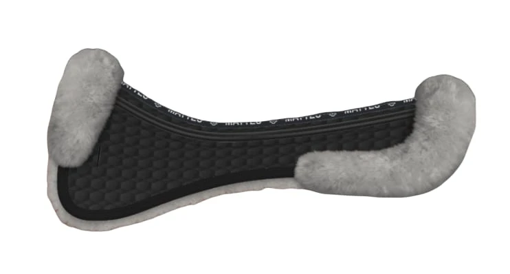 Dieser Lammfellpad verfügt über ein sogenanntes PM-System mit Löchern zur Befestigung der Gurte von der Schabracke, hat also keine eigenen Gurte. Das Sattelpad hat auch oben Löcher für das „Saddle Fix System“, wenn Sie das Sattelpad am Sattel befestigen möchten. Separat erhältlich.