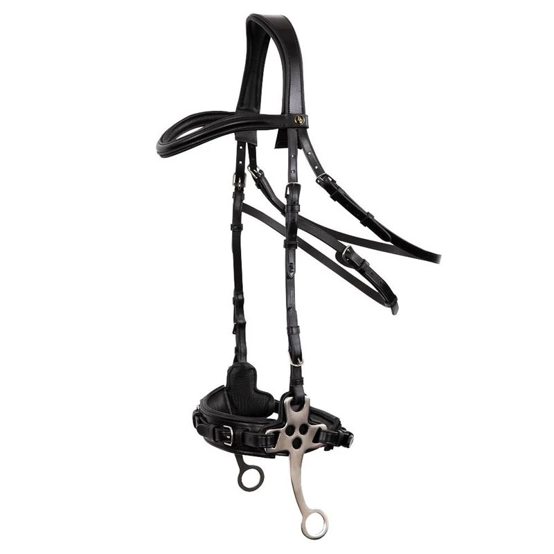 Ein unglaublich feines Zaumzeug mit weichem Futter an der Innenseite aller Teile, sodass das Pferd vor Scheuern geschützt ist. Die Größe wird durch einen Kinnriemen reguliert, der auch eine weiche Polsterung hat.