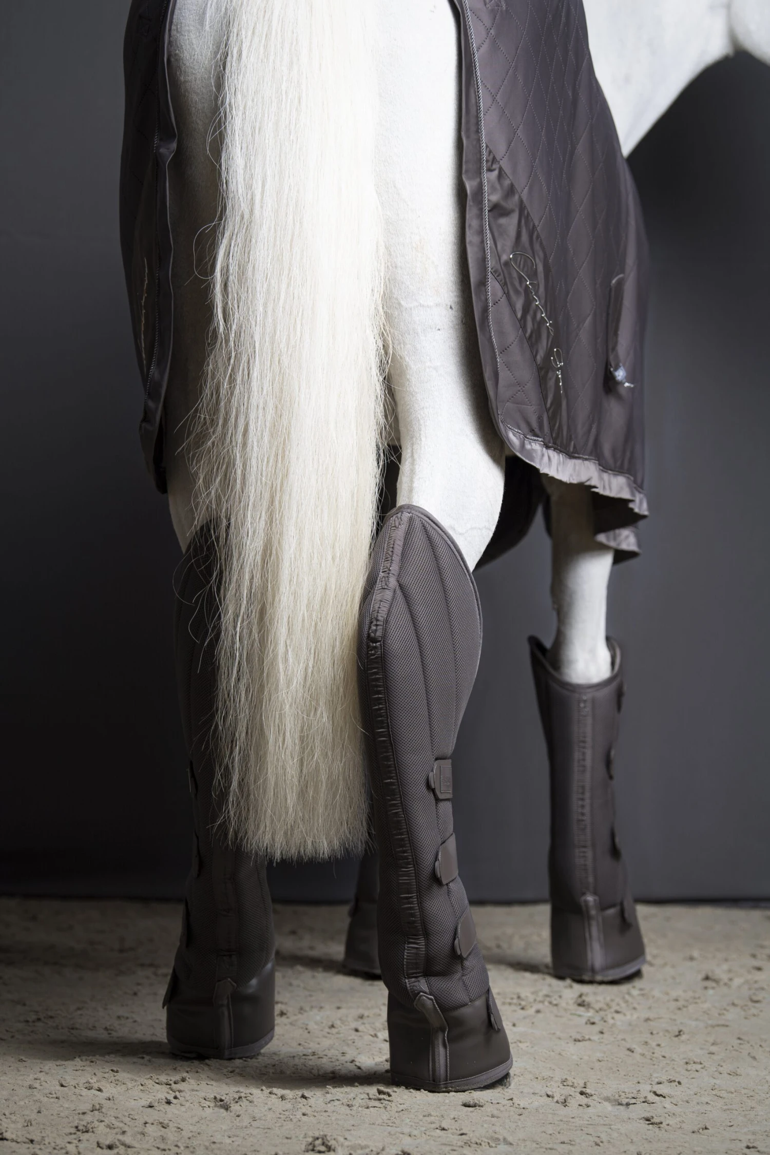 Die Mesh-Transportschützer von Eskadron haben eine schöne braune Farbe (Fossil), starke Klettverschlüsse und eine Nylonverstärkung an der Unterseite am Huf.