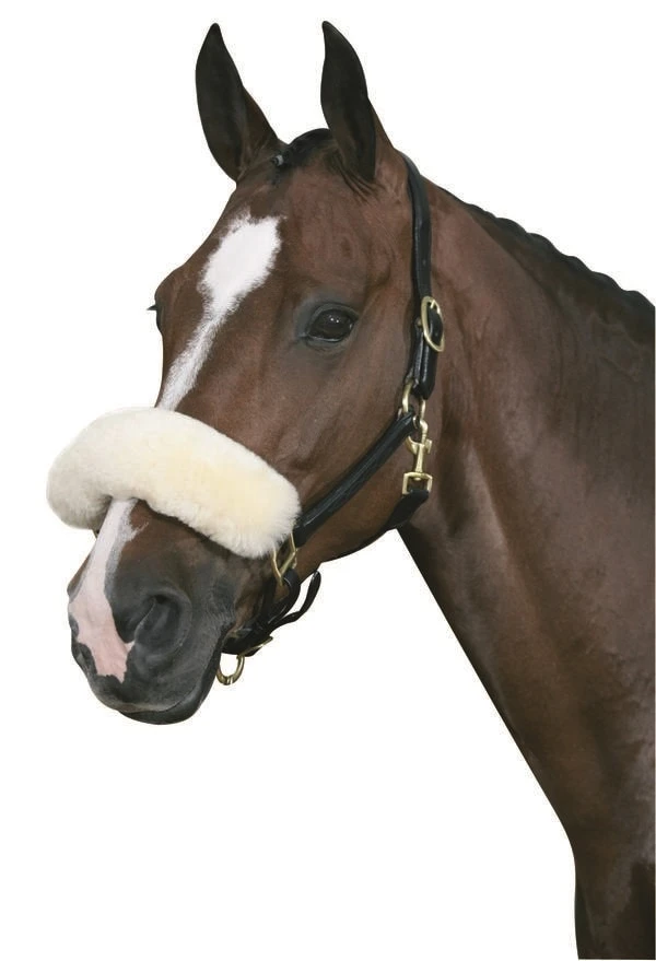 Fårskinnsludd till nosremmen på grimman, stängs med kardborre. Naturfärgad 29 cm