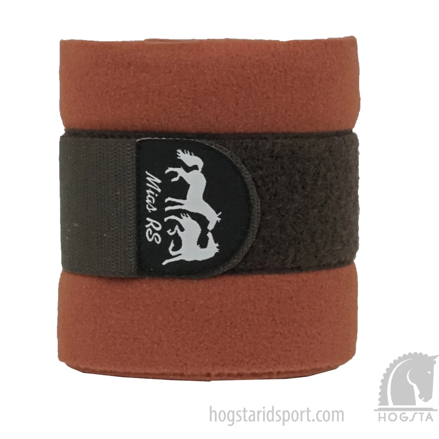 Elegante Fleecebandagen von Mia RS in der Farbe dunkles Rostrot. Die Bandagen bestehen aus hochwertigem Fleecematerial, sind 3 Meter lang und mit Klettverschluss versehen. Erhältlich im 2-er Pack.