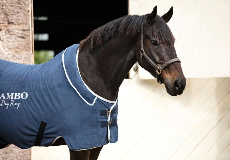 Zeitmangel, aber Sie möchten, dass das Pferd die beste Pflege erhält, dann ist dies etwas für Sie. Rambo Dry Rug „Super fast drying for busy riders“ sorgt dafür, dass das Pferd schnell trocknet und nicht kalt wird, während das Fell glänzend wird.