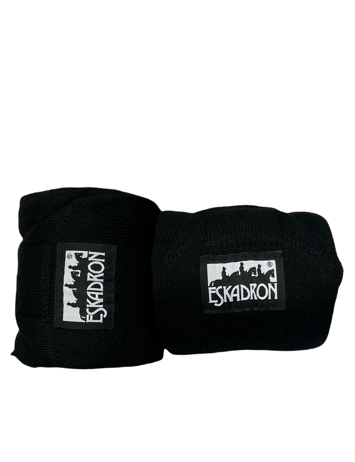 Schwarze, gestrickte Stallbandagen von Eskadron mit starkem Klettverschluss.