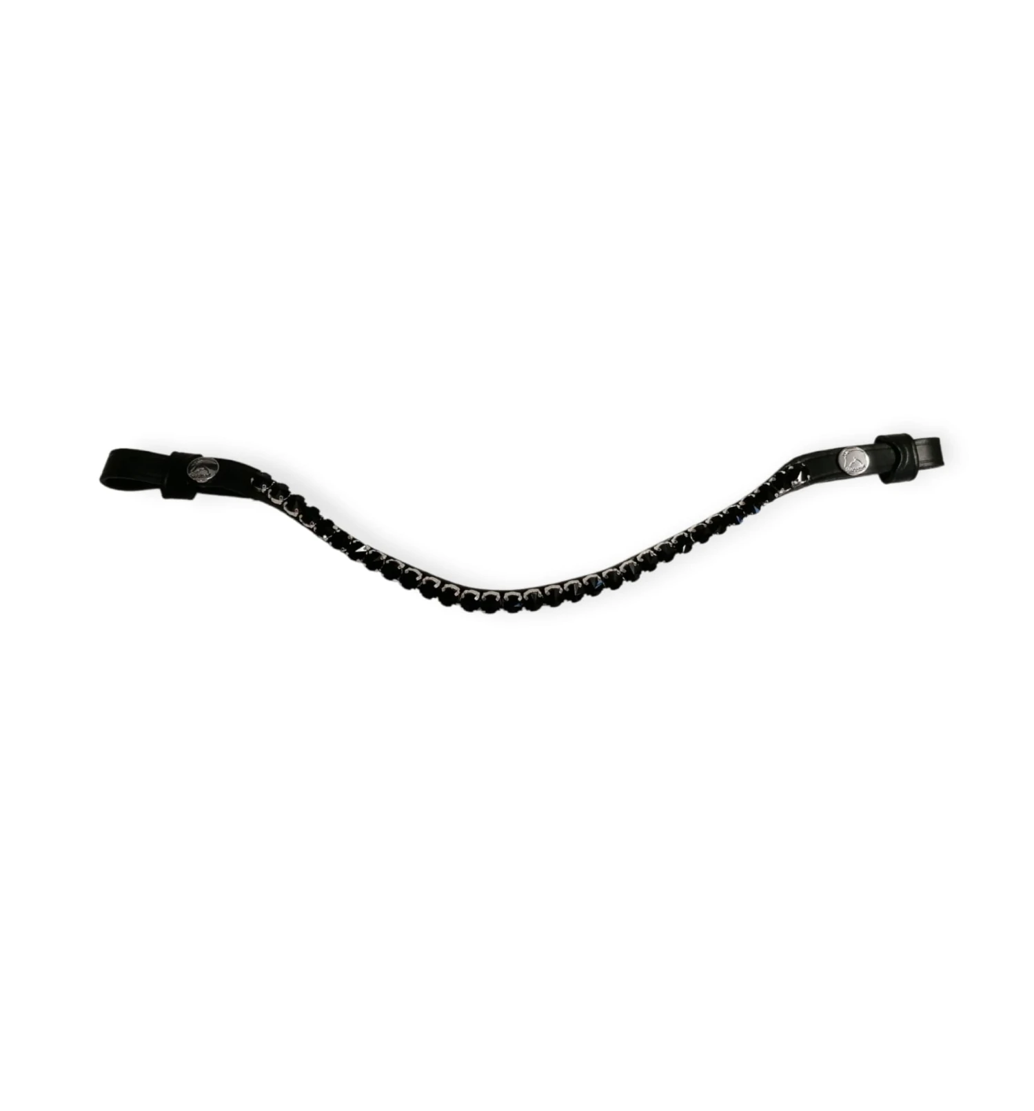 Ein hübsches und flexibles Stirnband, das leicht gebogen ist. Passt sowohl zur Trense als auch zur Kandare.