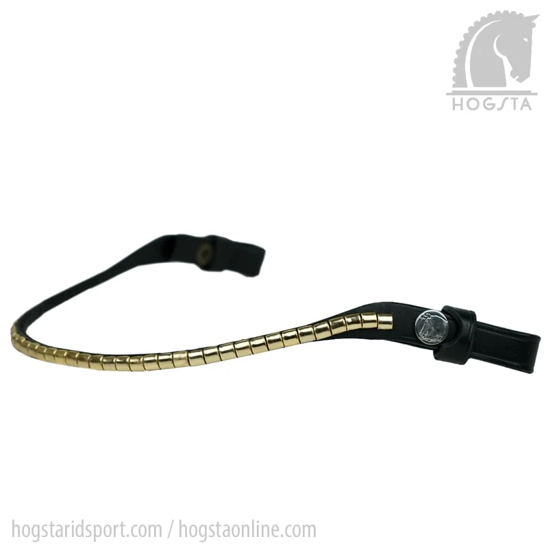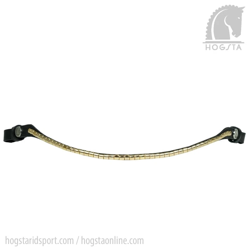 Dieses Stirnband ist aus schwarzem Leder mit Messingvierecken gefertigt. Stilvolle Finesse-Logos auf beiden Seiten. Ein nettes und flexibles Stirnband, das leicht gebogen ist. Sowohl für Trensen als auch Kandarenzäume geeignet. Größe Full, ca. 45cm lang.