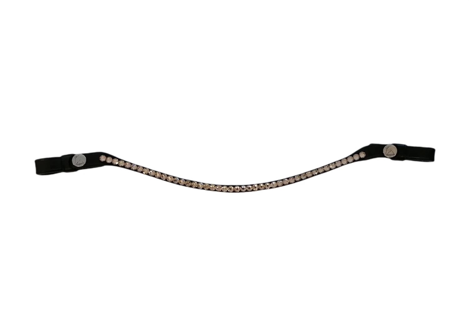 Ein schlichtes und flexibles Stirnband, das leicht gebogen ist. Sowohl für Zaumzeug als auch für Kandare geeignet.
