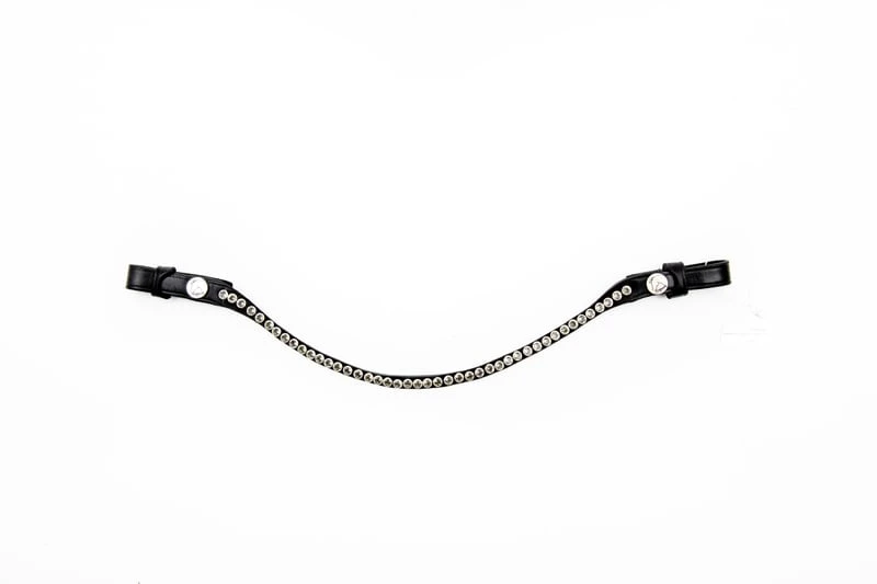 Ein hübsches und flexibles Stirnband, das leicht gebogen ist. Sowohl für Trensen als auch Kandaren geeignet. Größe Full, ca. 45cm lang.