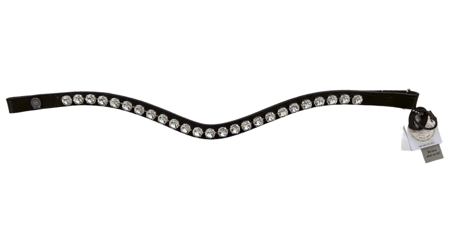 Bestellbar für rundgenähtes oder flach genähtes Leder in der Farbe Negro. Dies ist ein Pferdestirnband mit viel Bling!