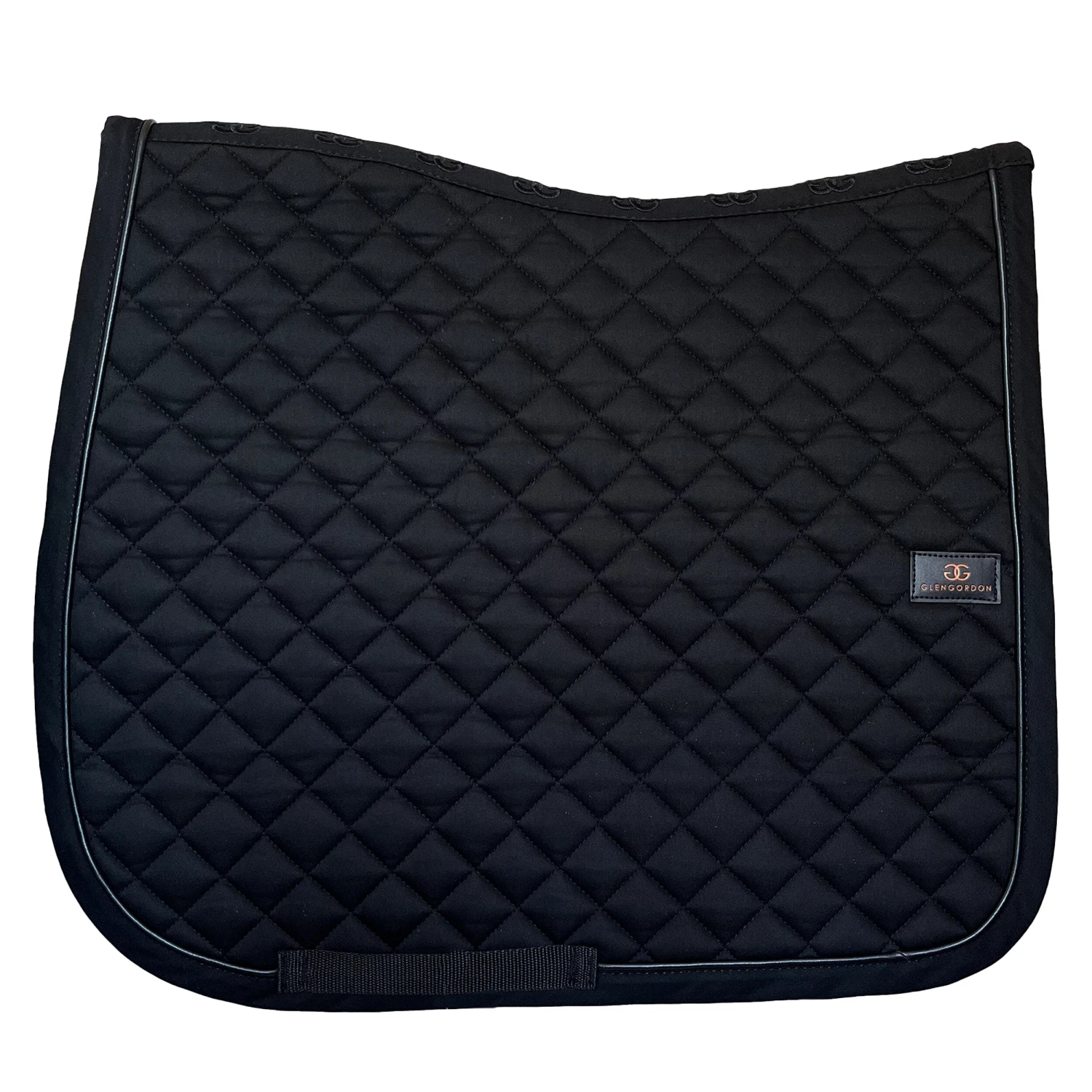 Diese Dressurschabracke stammt aus der Thamar-Kollektion von Glen Gordon, die sich durch ein stilvolles Design, exklusive Materialien und klassische Farben auszeichnet. Die Schabracken haben eine Zierkordel, ein Logo aus Kunstleder und dank des stilvollen und zeitlosen Designs eignet sich diese Kollektion perfekt zur Ergänzung mit Ihrer eigenen Stickerei oder Vereins-/Firmenlogo.