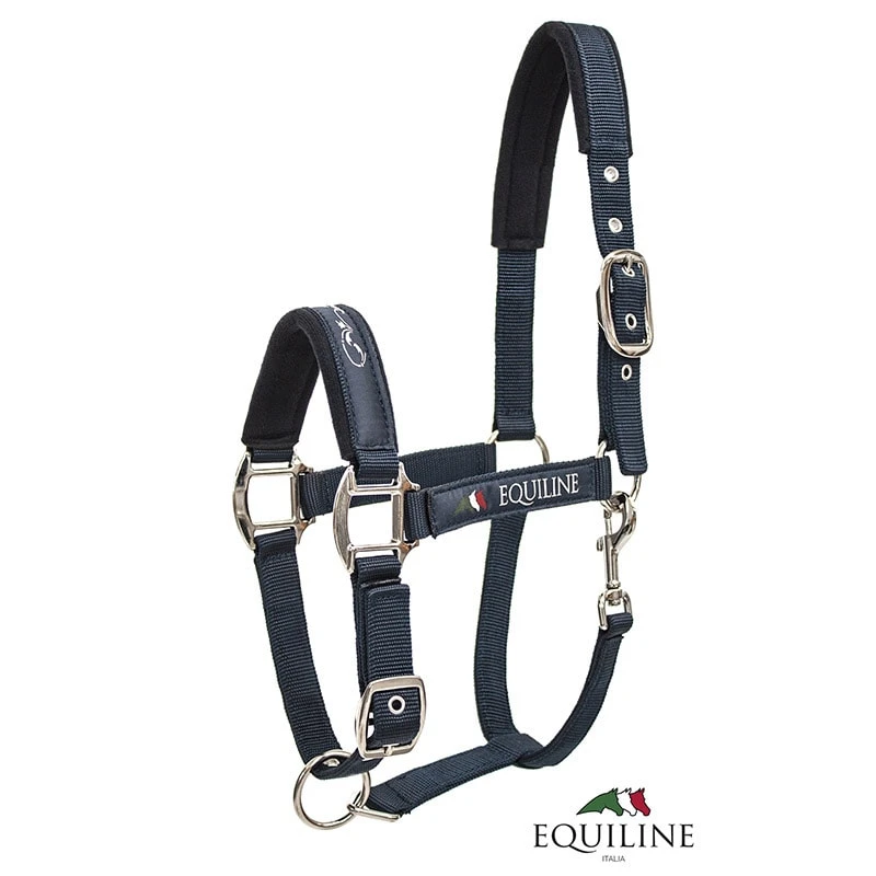 Timmy Nylonhalfter von Equiline. Ein hochwertiges Halfter aus Nylon von Equiline. Dieses Halfter hat schöne Details, elegante Stickereien und das Equiline-Logo an der Seite, das einen sehr exklusiven Look verleiht.