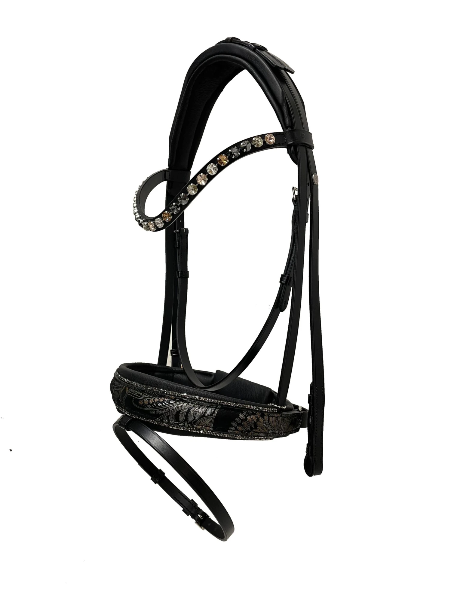 Der Nasenriemen dieser Trense ist 5 cm breit und im Modell Comfort XS, was bedeutet, dass sich der Nasenriemen zu den Seiten hin verjüngt, wo das Pferd am Gebiss am wenigsten Platz hat. Der Nasenriemen hat eine schwedische Verschnallung, d.h. er wird zurückgenköpft.