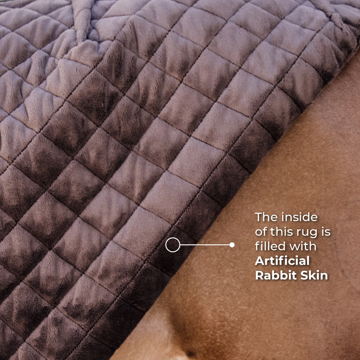Die Außenseite der Decke besteht aus Polyester-Mikrofaser und das Garn in diesem Stoff wurde geschliffen, um ein Baumwollgefühl zu erzeugen. Die Innenseite der Decke besteht aus dem sehr beliebten synthetischen Kaninchenfell von Kentucky. Dadurch ist diese Unterdecke sehr angenehm für das Pferd.