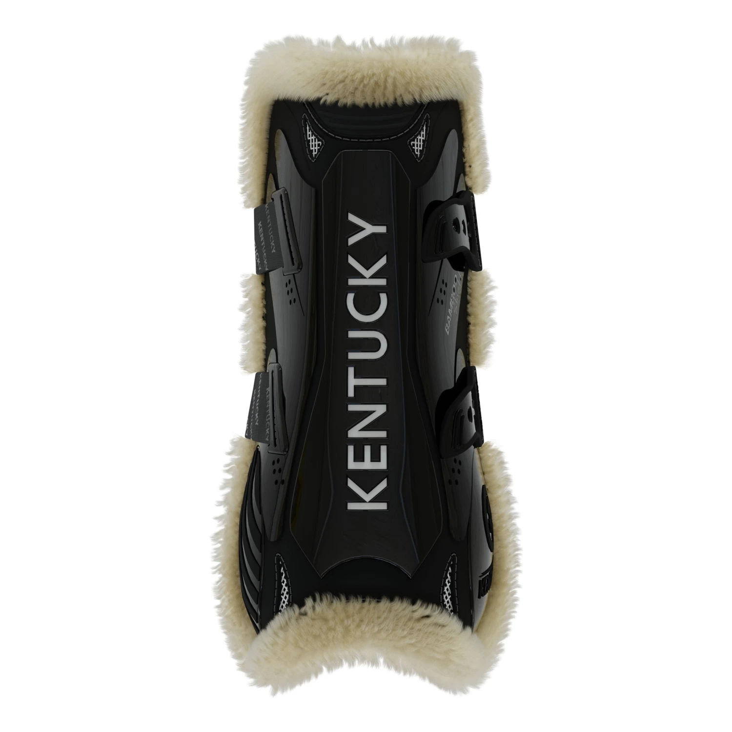 Vegan Sheepskin Tendor Boots Bamboo Elastic sind die perfekten Gamaschen für Ihr Pferd! Die Schützer bestehen aus einer starken TPU-Schale mit mehreren Belüftungslöchern an der Sehne und einem großen Mesh-Dreieck zur Belüftung. Der Sehnenbereich selbst ist mit einem Bambusschutz verstärkt, da Kentucky sehr darauf bedacht ist, durch eine neue grüne Technologie auf Nachhaltigkeit zu setzen. Die Wahl von Bambus beruht auf der Tatsache, dass es sich um eine der am schnellsten wachsenden Pflanzen der Welt handelt und dass es eine enorme Zugfestigkeit hat, die das Eindringen scharfer Gegenstände verhindert, und außerdem antibakteriell ist. Dort, wo sich das Bein des Pferdes bewegt, wird ein Stück weicher Naturkautschuk platziert, um Reibung zu vermeiden. Die Innenseite der Gamaschen ist außerdem mit einer zusätzlichen TPU-Schicht verstärkt.