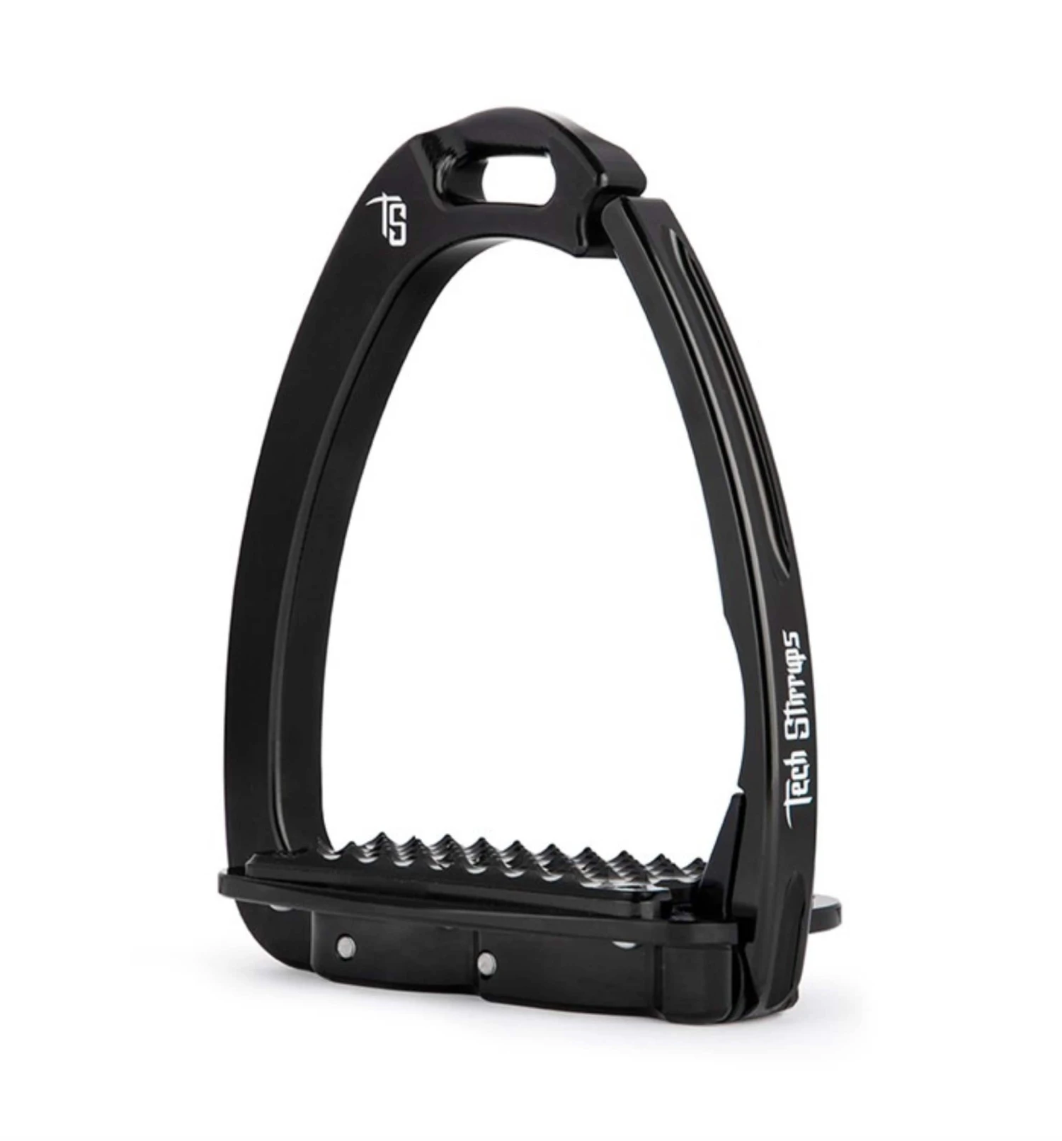 Der Venice Dressage Sloped Tech ist im Dressurmodell und diese Steigbügel sind in der Farbe Schwarz.