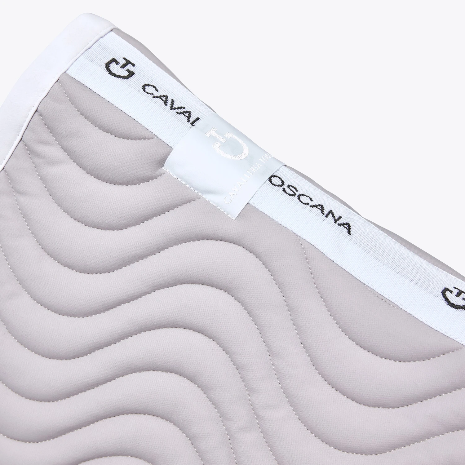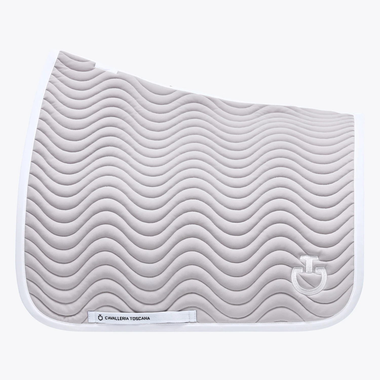 Diese Dressurschabracke hat ein wunderschönes Design, das die perfekte Mischung aus Einzigartigkeit und Klassik darstellt. Die Dressurschabracke Quilted Wave Jersey ist in einer schöne hellgrauen Farbe mit weißen Kanten und einer einzigartigen Steppung mit Wellenmuster. Sie hat außerdem ein CT-Logo in weiß auf der linken Seite und einen weißen Kanal entlang des Rückens.